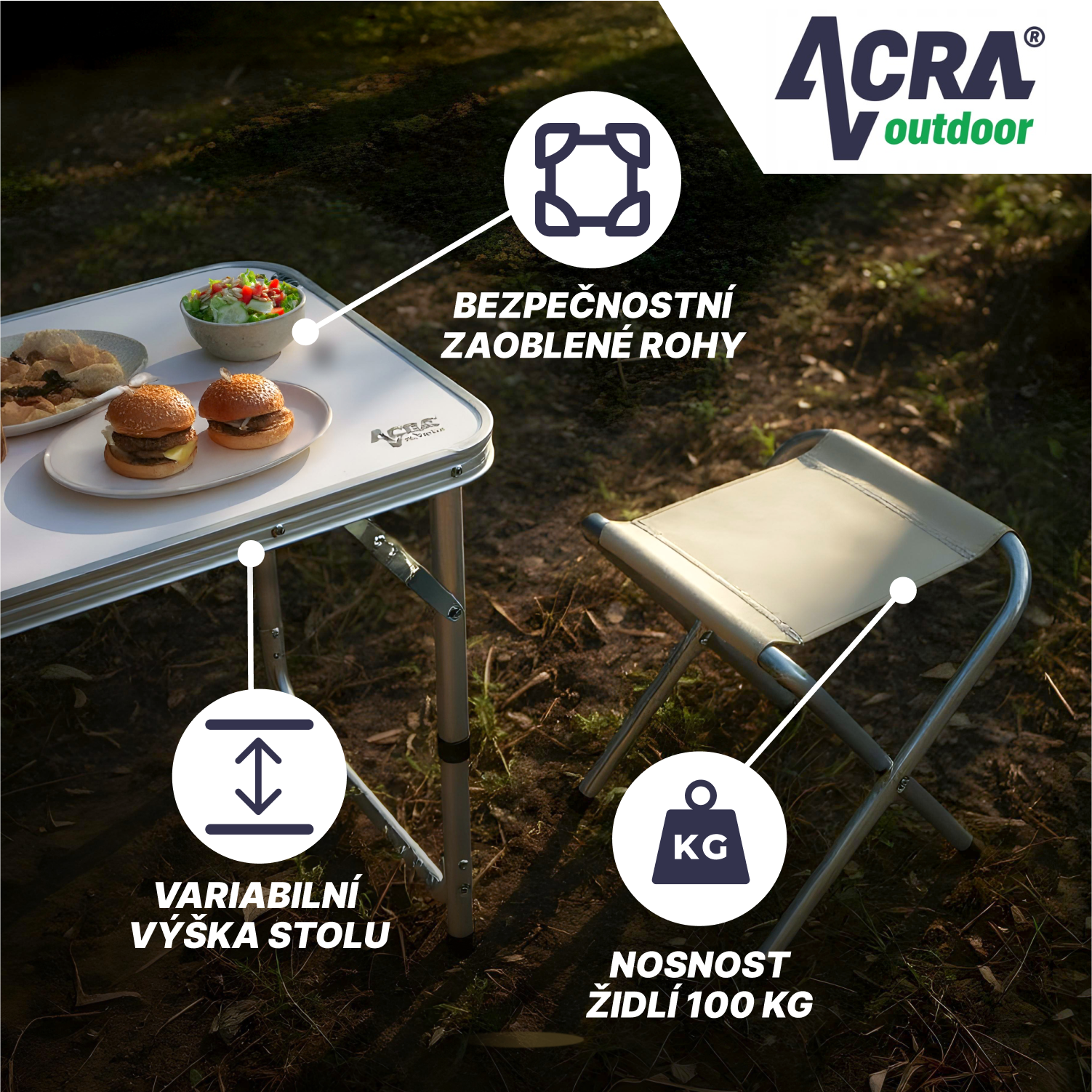Kempingový set Acra C3L je ideální volbou pro všechny, kteří si cení praktického, odolného a stylového nábytku. Je perfektní pro rodinné výlety, do karavanu i na chatu.