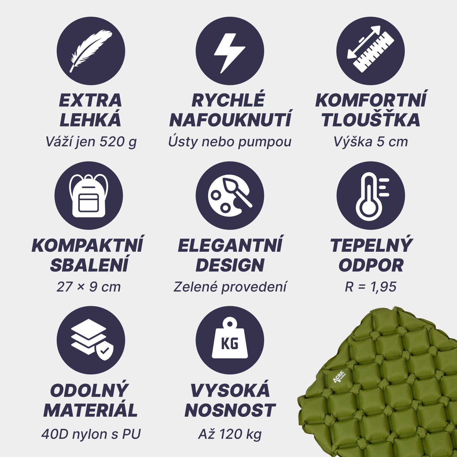ACRA L140ZEL Nafukovací karimatka zelená: Lehký a kompaktní společník pro náročné turisty!