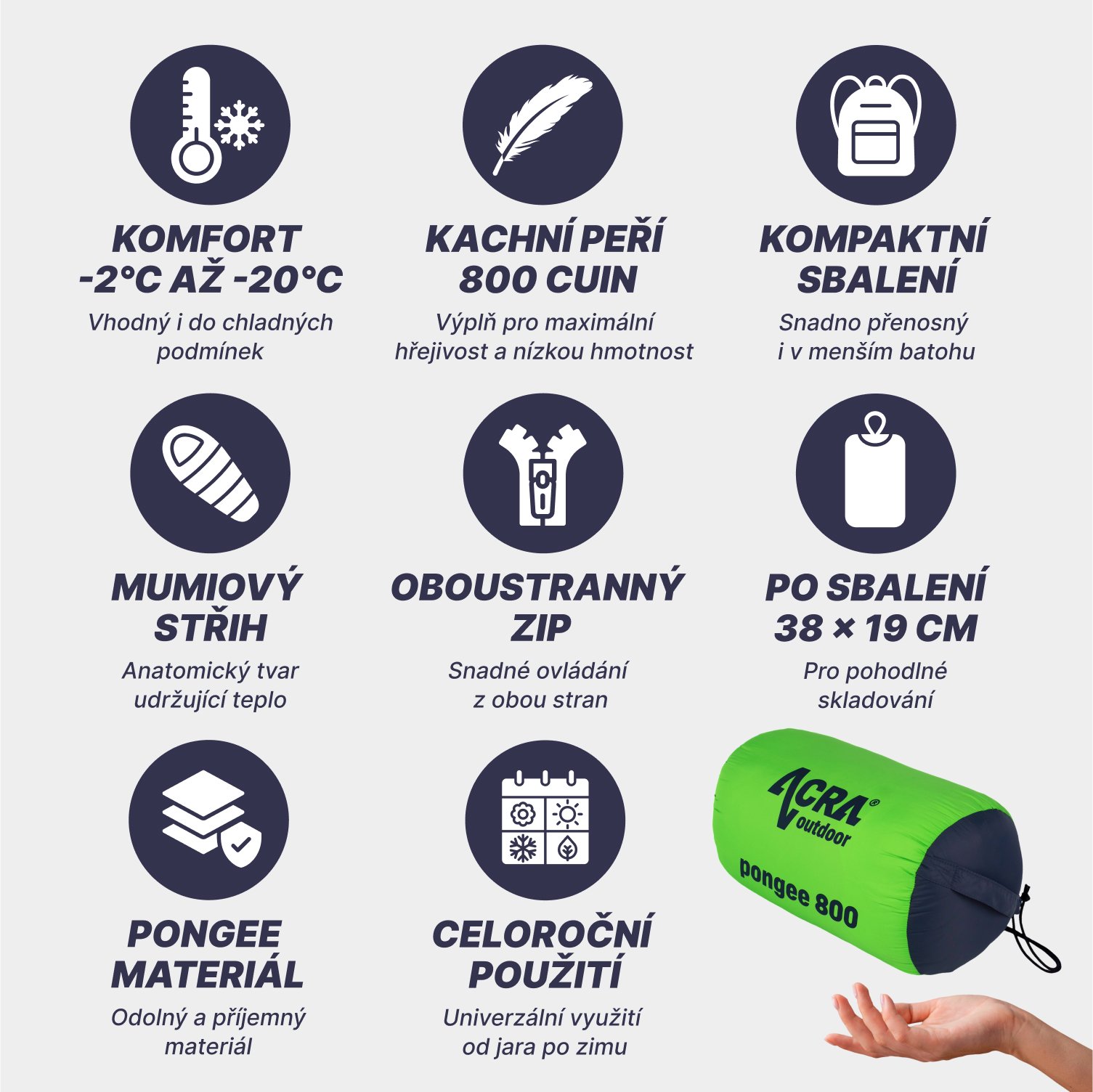 Péřový spací pytel Acra Pongee 800 - hřejivé objetí pro vaše outdoorové dobrodružství!