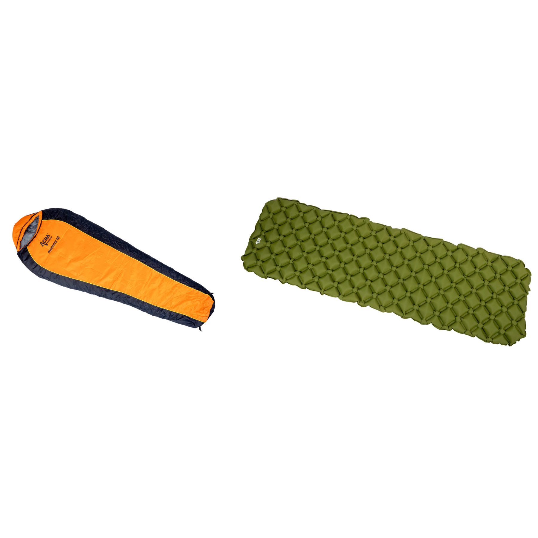 Balení obsahuje Spacák Acra Mummy 10 a karimatku L140ZEL Nafukovací - zelená.
