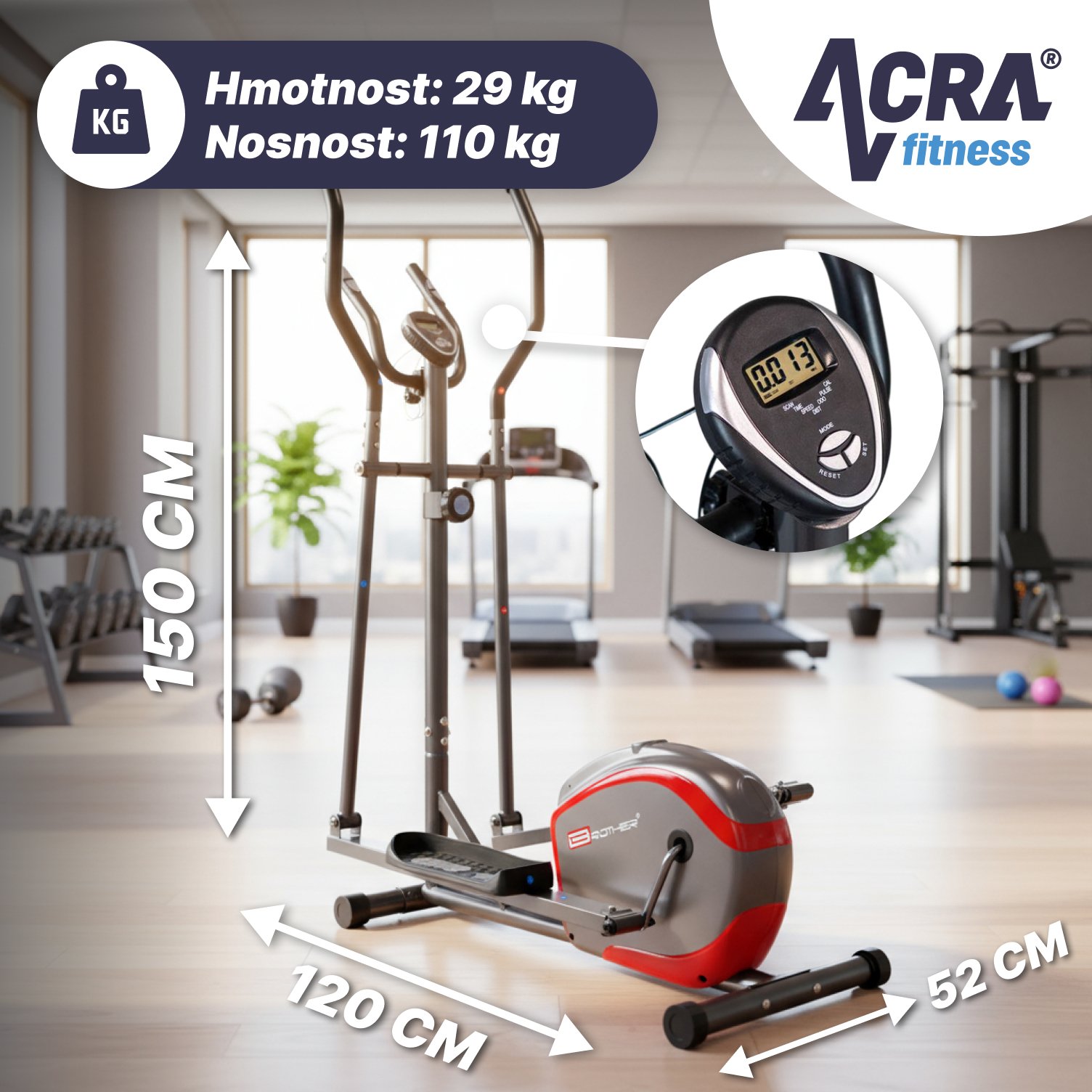 MAGNETICKÝ ELIPTICAL BE 540 svými funkcemi a kvalitním použitým materiálem na mechanicky namáhaných částech však elliptical stále patří do kategorie k domácích posilovacích strojů pro nenáročné uživatele s následujícími parametry :- magnetická brzda s plynulým nastavením zátěže - 8 stupňů