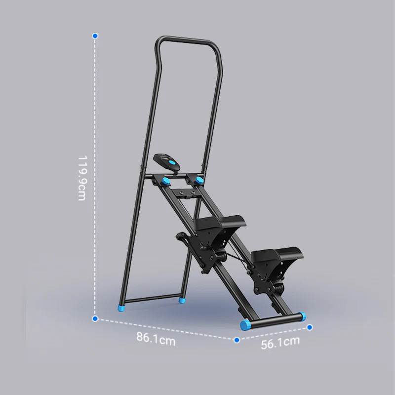 Trénink inspirovaný lezením formuje hýždě a nohy. Nastavitelné pedály se přizpůsobí každé úrovni kondice, zatímco LCD displej sleduje pokrok v reálném čase. Díky skládací, prostorově úsporné konstrukci a robustnímu provedení je tento stroj navržen pro dlouhou životnost.