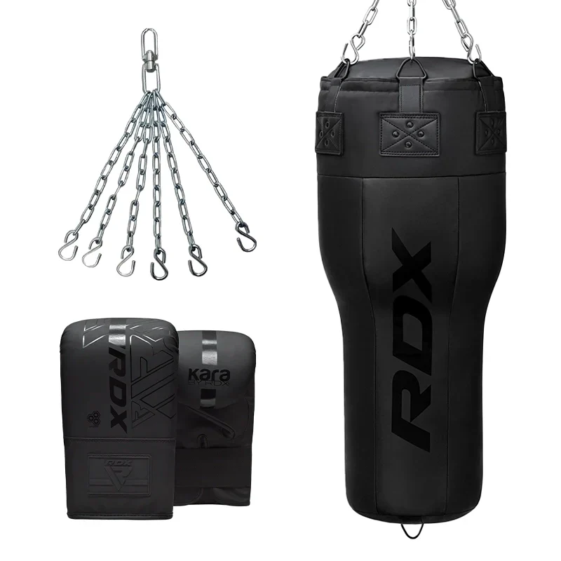 Popis - RDX Tvarovaný Angle Punch Bag boxovací pytel 3v1, rukavice, otočný řetěz, plněný, černý