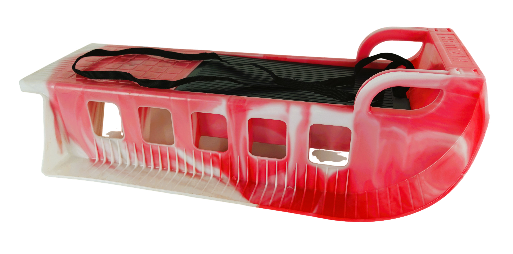 Sáně plastové KAMZÍK s popruhem na tahání a úložným prostorem v sedátku, určené pro rekreační sport - sáňky s jedinečným designem pro ty, kteří netouží po jednolitých produktech sériové výroby.