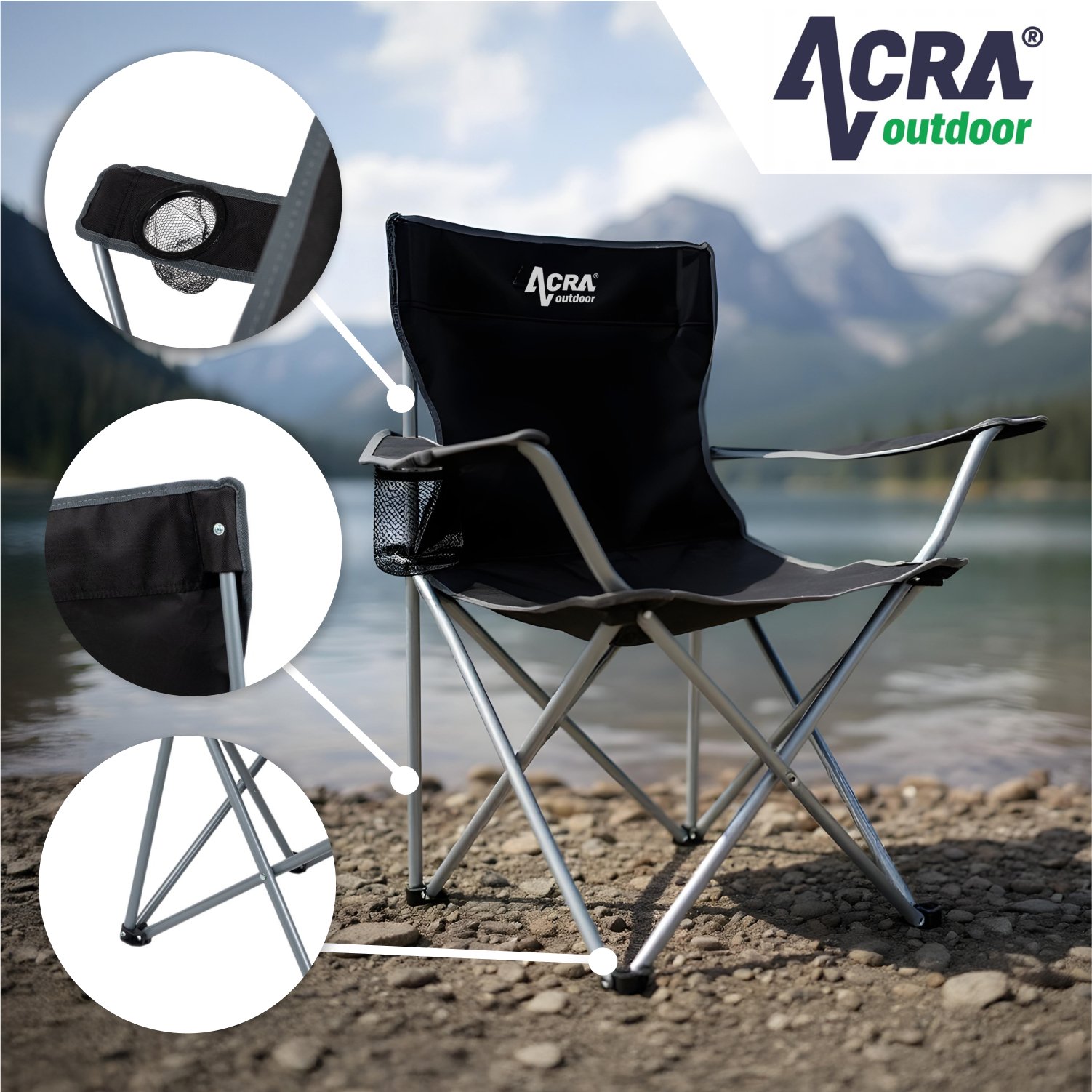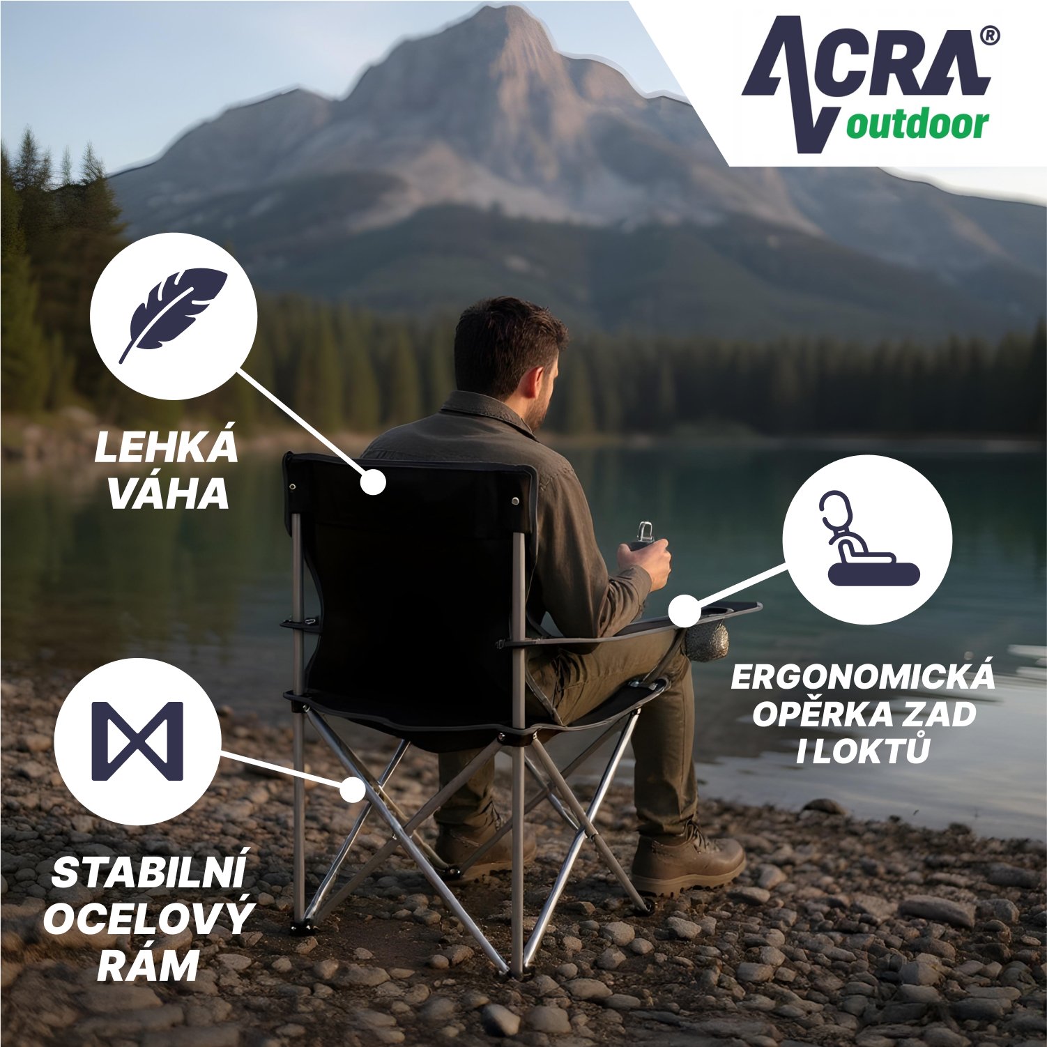 Skládací křeslo - univerzální. Konstrukce - ocelové trubky o průměru 16mm. Sedák opěrka a područky - PES Oxford 600 D. Rozměry v rozloženém stavu jsou 50x50x80cm. Sedák je ve výšce 40 cm od země. Křeslo je snadno přenosné a lze ho libovolně použít na venkovní i vnitřní sezení. Vhodné na kempování, na pláž, na ryby atd. Nosnost je 95 kg. Dodáváme v barvě černé - viz foto.Dodavatel: ACRA s.r.o., Brodská 161, Semily, 51301, obchod@acra.cz, 420481389087