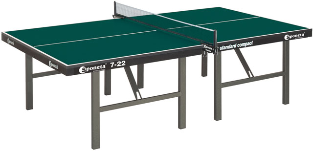 Pingpongový stůl Sponeta S7-22i je špičkový vnitřní stůl určený pro závodní účely s nejvyšší certifikací ITTF. Výhodou tohoto stolu je, že je kompletně smontovaný. Pouze se po vybalení z kartonu odklopí nohy od desky, desky se spojí k sobě, namontuje se držák se síťkou a vše je připravené k použití. Stůl je natolik kvalitní, že na něj poskytujeme prodlouženou záruku na 3 roky. Má speciálně broušený povrch na 25 mm silné desce. Tato deska již zaručuje stálé vlastnosti pro závodní hru na nejvyšší úrovni. Deska je vyztužená ocelovým rámem 50 x 20 mm, který ji ještě dále zpevňuje. Nohy stolu jsou ocelové z profilu 60 x 40 mm. Stůl je vyztužený kovovými táhly, která zaručují 100% stabilitu stolu.Tento stůl je bez pojezdu.