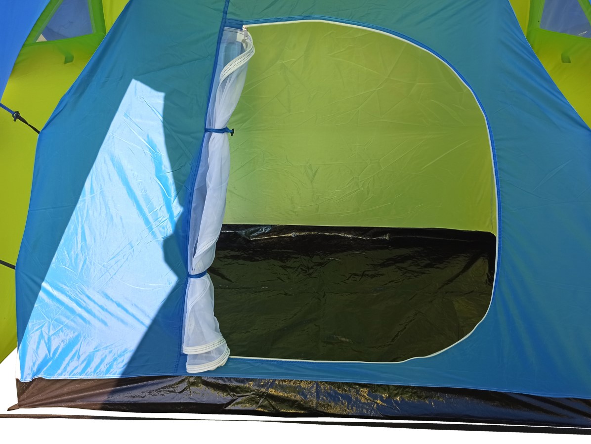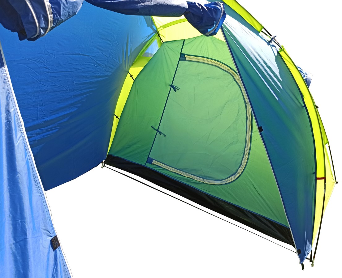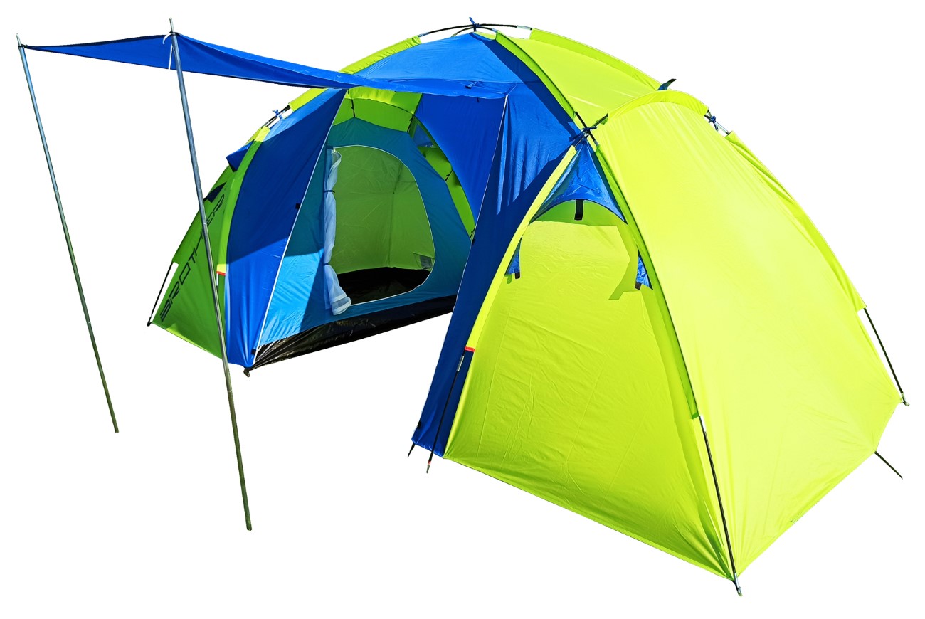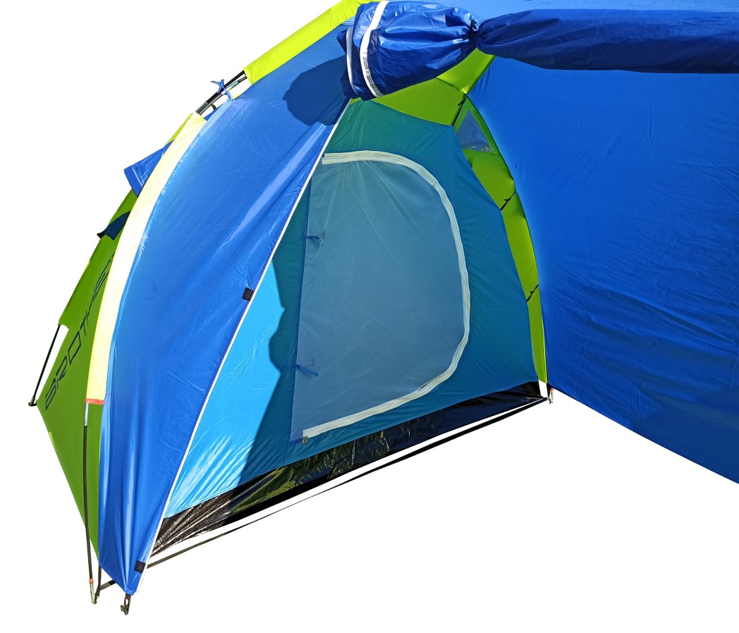 Rodinný stan vhodný pro příležitostné kempování. Předsíňka spolu se slunečním přístřeškem vytvářejí dostatek vnitřního prostoru i v případě nepříznivého počasí. I při své velikosti je velmi skladný a s pomocí laminátových prutů postavení nezabere víc než 15 minut. Vhodný pro 4 osoby.