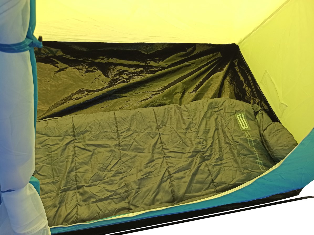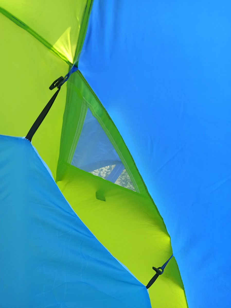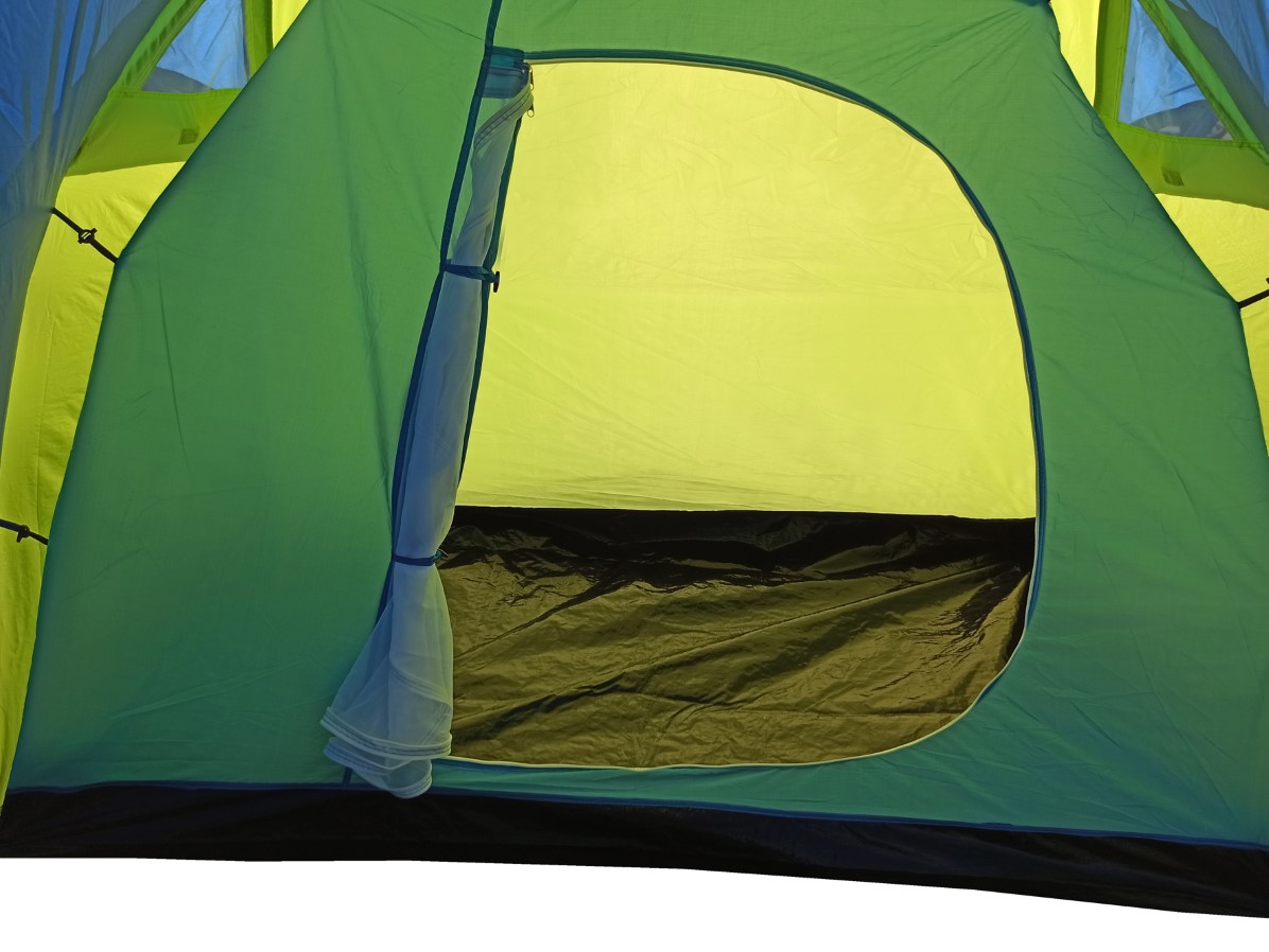 Rodinný stan vhodný pro příležitostné kempování. Předsíňka spolu se slunečním přístřeškem vytvářejí dostatek vnitřního prostoru i v případě nepříznivého počasí. I při své velikosti je velmi skladný a s pomocí laminátových prutů postavení nezabere víc než 15 minut. Vhodný pro 4 osoby.